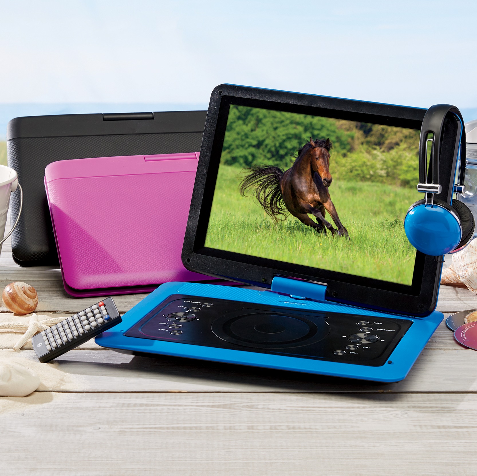 Ematic 7 In Portable Dvd Player With Colored Headphones And Carrying Case Epd707pr The Home Depot