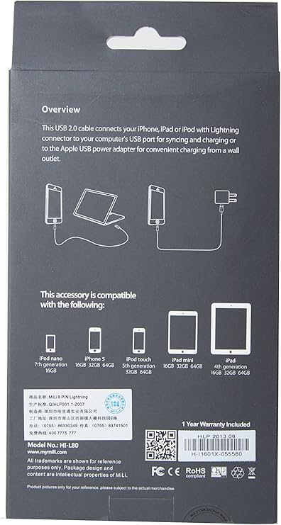 Mili 8 Pin Lightning Cable Amazon Co Uk Electronics