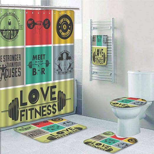 Amazon Com Bathroom Fashion 5 Piece Set Shower Curtain 3d Print Fitness Various Motivational Quotes In Colorful Frames Get Fit Active Healthy Lifestyle Multicolor Bath Mat Bathroom Carpet Rug Non Slip Bath Towls Home Kitchen