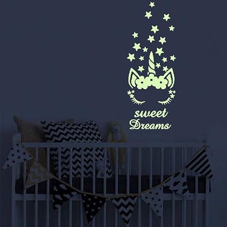 Glow In The Dark Unicorn Stars Wall Decal Inspirational Quotes Floral Decal Glow Stickers Wall Decal For Kids Boy Girl Nursery Room Bedroom Decor Amazon In Baby