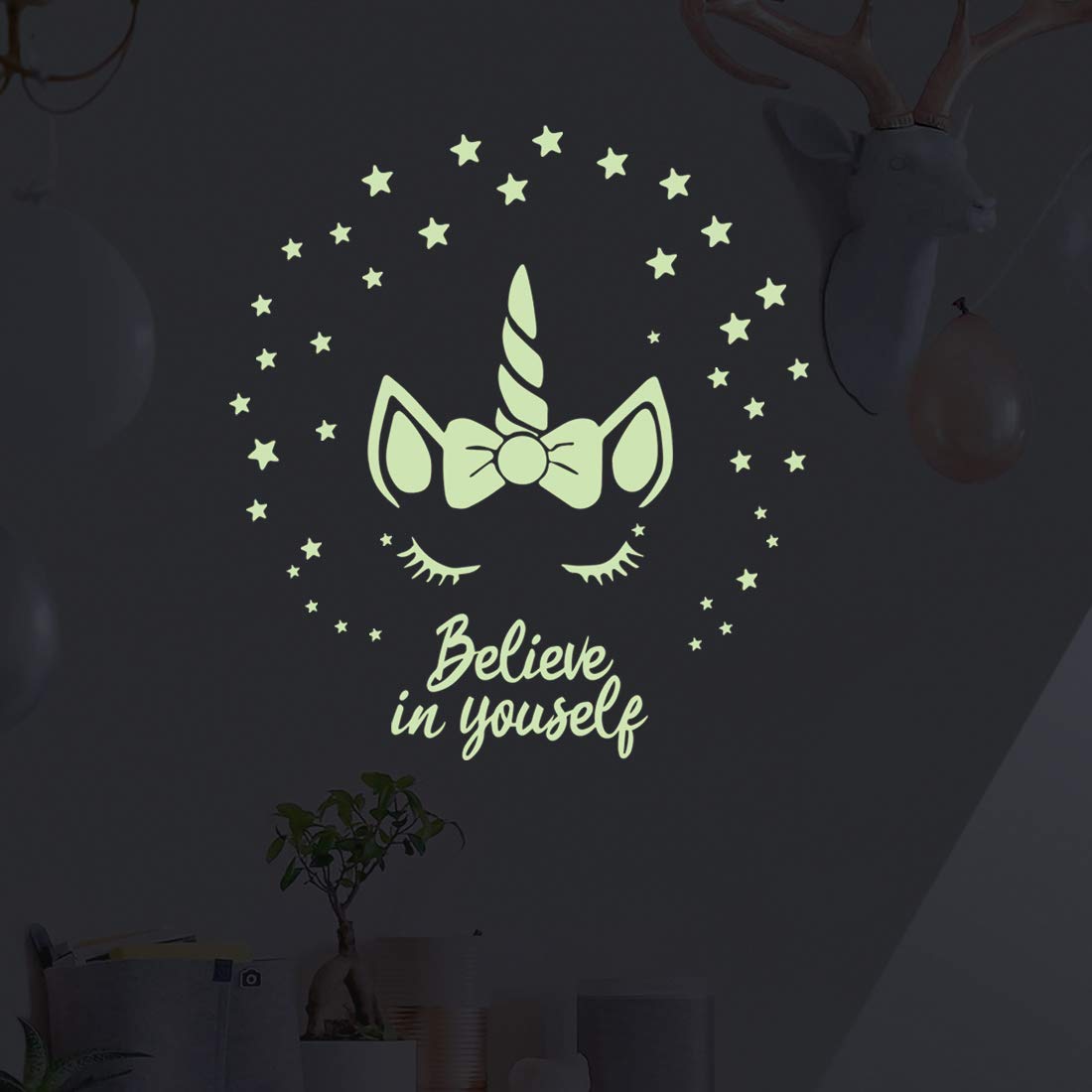 Glow In The Dark Unicorn Stars Wall Decal Motivational Quotes Believe In Yourself Luminous Stickers For Kids Boys Girls Nursery Bedroom Decor Wall Stickers Murals