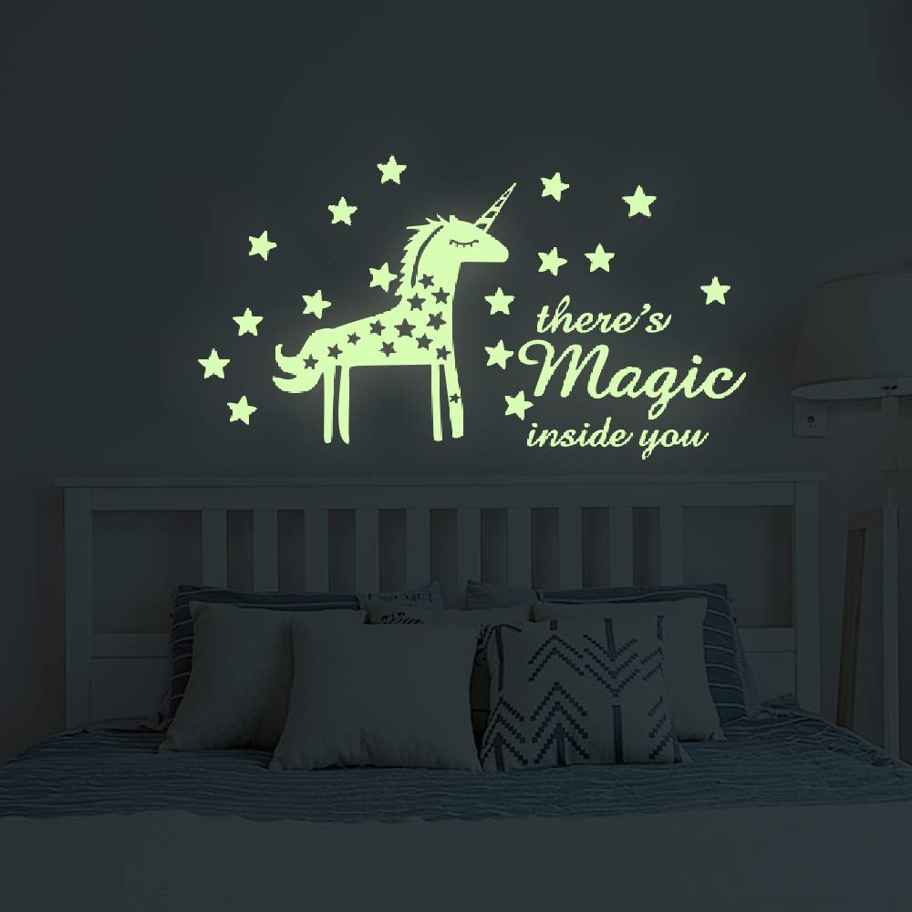 Amazon Com Glow In The Dark Unicorn Stars Wall Decal Motivational Quotes There Is Magic Inside You Luminous Stickers For Kids Boys Girls Nursery Bedroom Decor Kitchen Dining